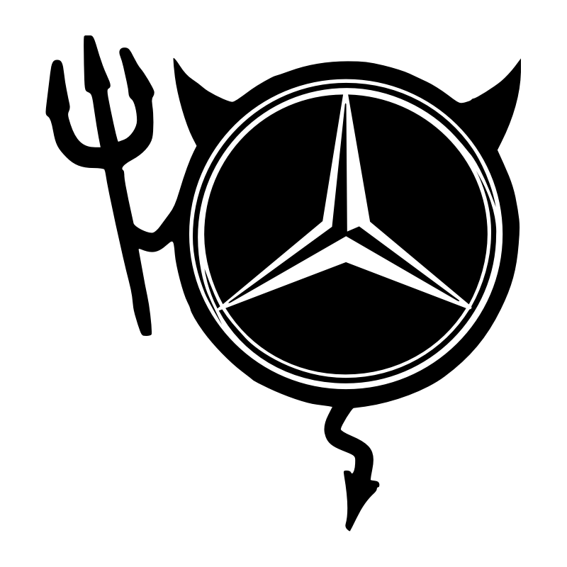 Sticker Mercedes Diable en vinyle adhésif. Résistant aux UV et intempéries, idéal pour carrosserie, vitres et accessoires auto. Compatible tous modèles.